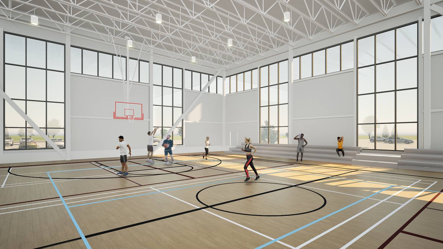 - gymnasium and multipurpose spaces for sport, fitness, and community use,